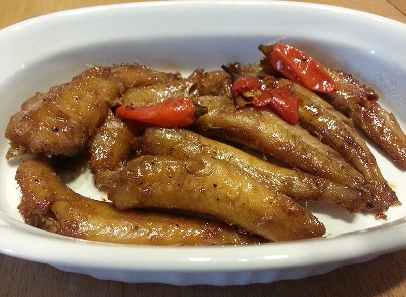 Phần da cá bên ngoài vàng đều, phần thịt bên trong thì săn lại nhưng không hề khô. Xương cá rất mềm nên bạn chỉ cần loại bỏ phần xương sống khi ăn là được.